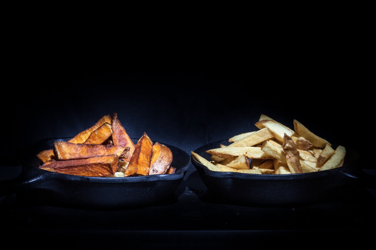 - Papas y Camote frescos cortados al momento (nunca congelados).